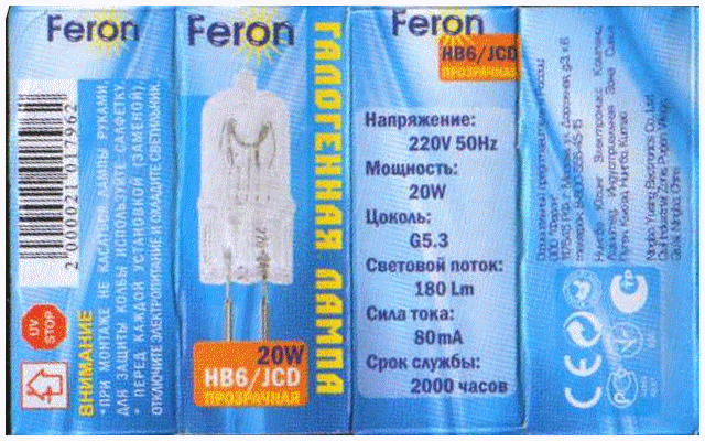 лампы накаливания (в исполнении со светильником) не более 20 Вт.